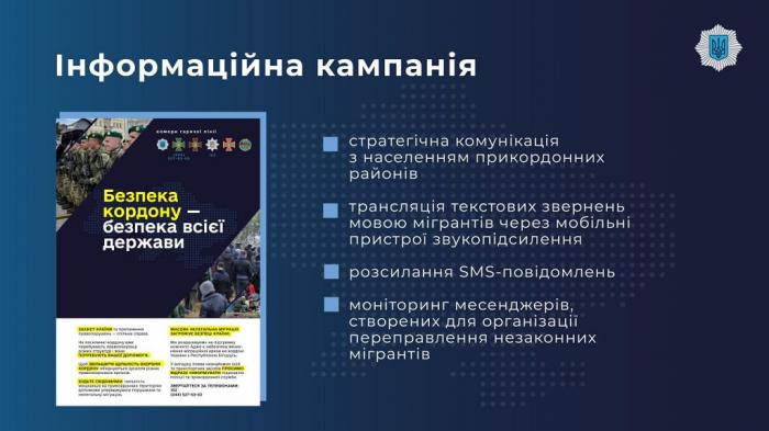 The Ministry of Internal Affairs of Ukraine, together with other law enforcement agencies, has developed a set of preventive measures to prevent provocations in areas of potential penetration of illegal migrants. It is about the timely identification and neutralization of instigators, guides, and other suspicious persons (http://www.univd.edu.ua/uk/news/11349).
