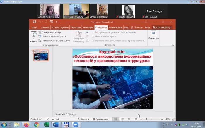 Within the All-Ukrainian Week of Law a round table meeting of scientific-cadets circle “Current development issues of national economic in globalization” was held at the Department of Social and Economic Disciplines on the topic “Peculiarities of usage of information technologies in law enforcement structures” (http://univd.edu.ua/uk/news/11777).