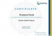 Participant of the School of Scientific Leadership of Kharkiv National University of Internal Affairs, 2nd year cadet of the Faculty № 1 Krystyna Koval took a course "Gender-based Violence" on the educational online platform LEEd CEPOL and received a certificate (http://univd.edu.ua/uk/news/11909).