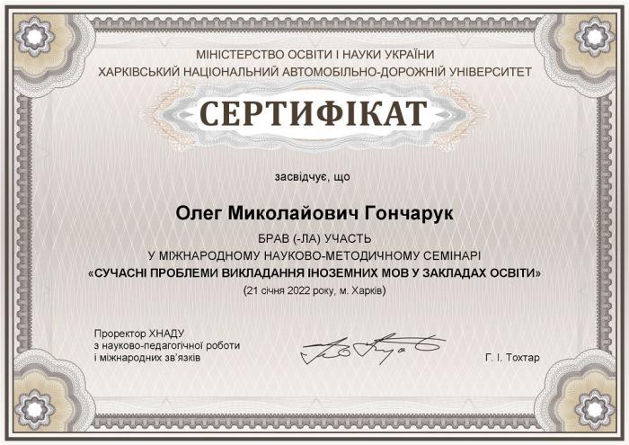 Oleh Honcharuk, Associate Professor of the Department of Foreign Languages, Faculty № 4 took part in the International Scientific and Methodological Seminar "Modern Problems of Lecturing Foreign Languages in Educational Institutions", organized by Kharkiv National Automobile and Highway University (http://univd.edu.ua/uk/news/12229).