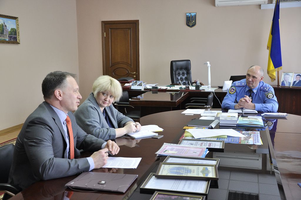 National University of Internal Affairs visited by OSCE Office in Ukraine as a part of the OSCE Project Co-ordinator in Ukraine Vaidotas Verba, national manager of the program "Human security" OSCE Project Co-ordinator in Ukraine Tatiana Rudenko, national experts project the OSCE Project Co-ordinator in Ukraine Nadiia Hvan and Liliia Hrudko
