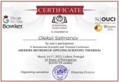 Associate Professor of the Department of Criminal Procedure and Organization of Pre-trial Investigation, Candidate of Law, Associate Professor Oleksii Salmanov remotely participated in the international conference "The 10th International scientific and practical conference "Modern methods of applying scientific theories", held by the European organization of scientists "International Science Group".https://univd.edu.ua/uk/news/15564