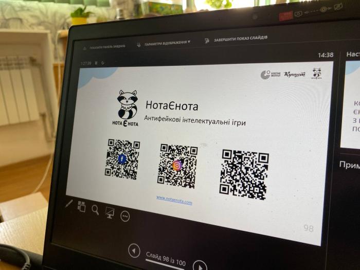 KhNUIA Cadet and Student Parliament joined the anti-fake intellectual game "NotaEnota" held at Kamianets-Podilskyi Lyceum "Slavutynka". NotaEnota is a team competition for those who want to learn how to recognize hostile information influences and fakes.https://univd.edu.ua/uk/news/15647