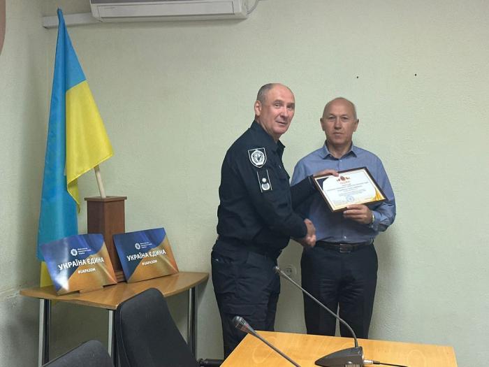 The Rector of Kharkiv National University of Internal Affairs Valerii Sokurenko held a working meeting with the management and academic staff of the Faculty No. 6. At the beginning of the event, he presented the Acknowledgement of the Academic Council of the University to the Deputy Dean of the Faculty No. 6 Serhii Zahorodnii for his diligent work, high professionalism, responsible attitude to the performance of official duties and on the occasion of the Independence Day of Ukraine. https://univd.edu.ua/uk/news/17025