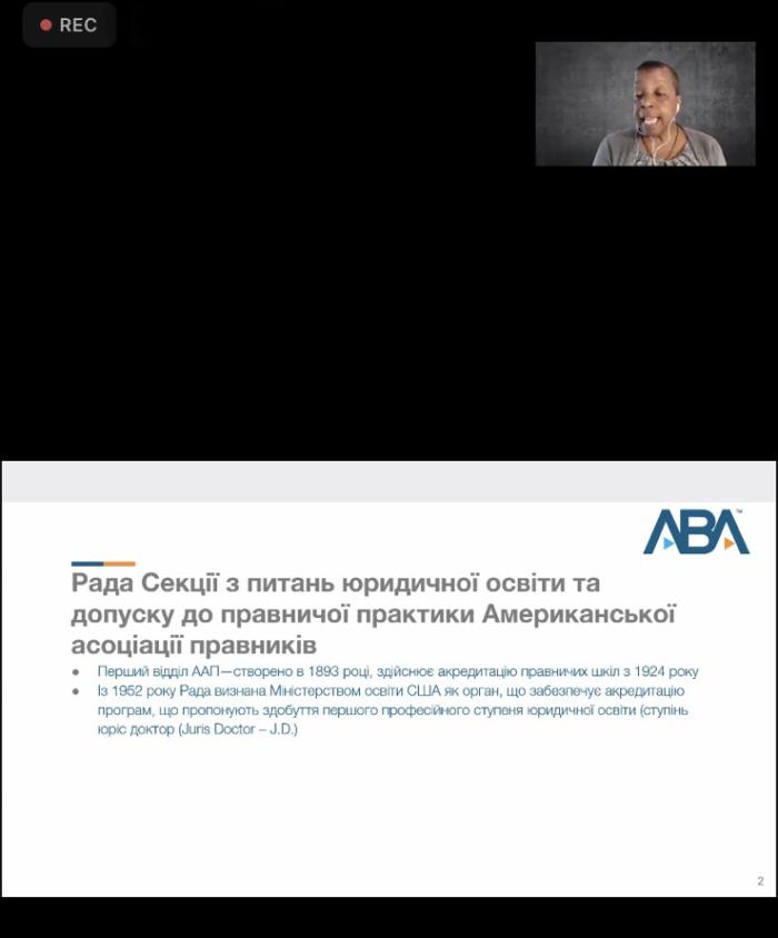 Olena Dzhafarova, Head of the Department of Police Activities and Public Administration, Doctor of Law, Professor, as a member of the sectoral expert council of the National Agency for Quality Assurance in Higher Education in the field of Law, took part in the webinar "Quality Assurance in Legal Education: American Bar Association Tools and Good Practices". https://univd.edu.ua/uk/news/17069