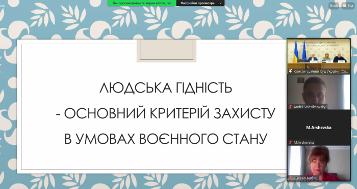 Representatives of the Department of Constitutional and International Law of the Faculty № 4 took part in a regular thematic online lecture by judges of the Constitutional Court of Ukraine Halyna Yurovska, Oleksandr Petryshyn and Oksana Hryshchuk. https://univd.edu.ua/uk/news/17901