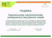 Kharkiv National University of Internal Affairs received a letter of gratitude from Oksana Bondar, head of Vinnytsia Regional Information Center "Creative" NGO, for raising conscious cadets and for partnering in the project "For Safety in Your Environment in Accordance with the RPA 1325!". https://univd.edu.ua/uk/news/18368