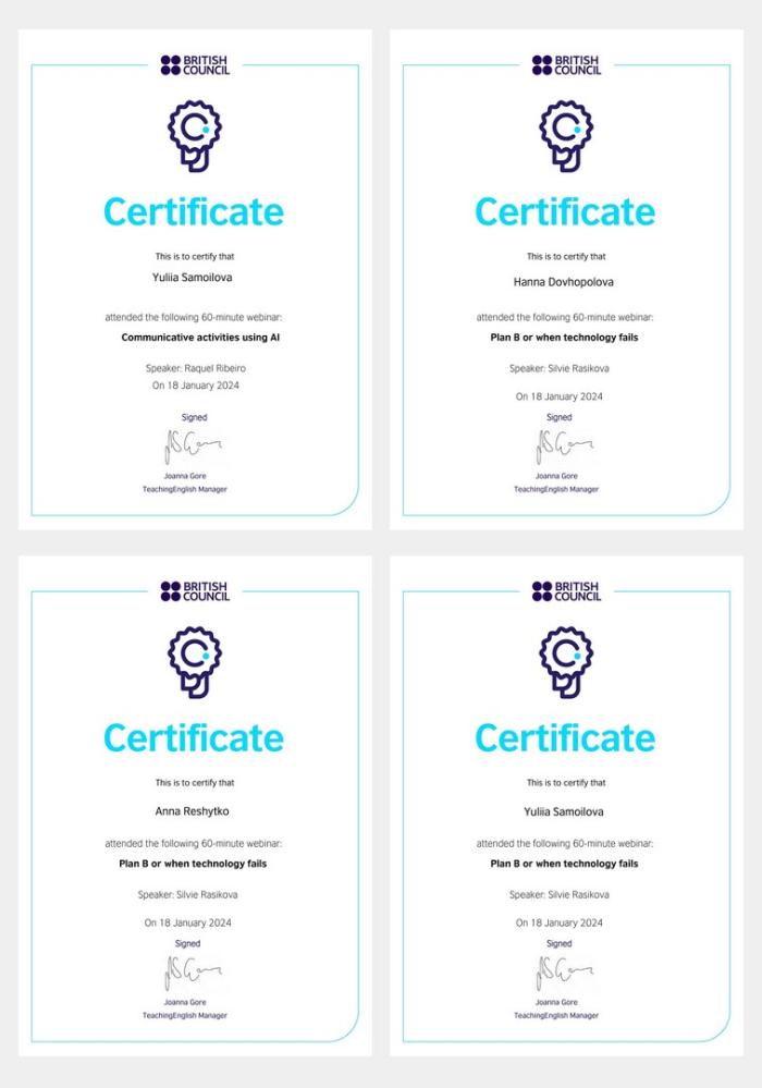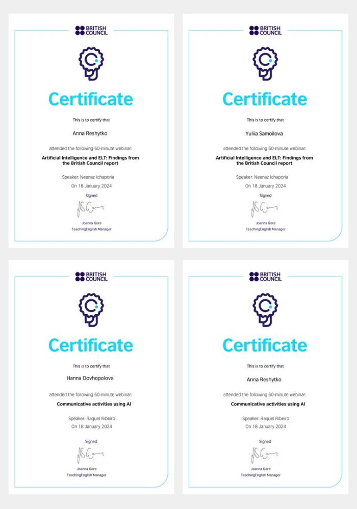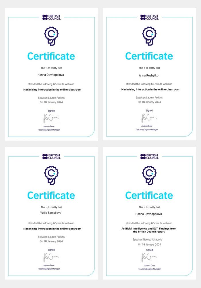 Lecturers of the Department of Humanities of Sumy Branch of KhNUIA Yulia Samoilova, Hanna Dovhopolova and Anna Reshytko took part in a series of webinars that combined several topics related to online learning https://univd.edu.ua/uk/news/18537