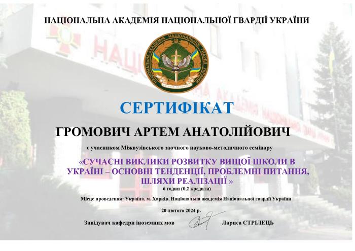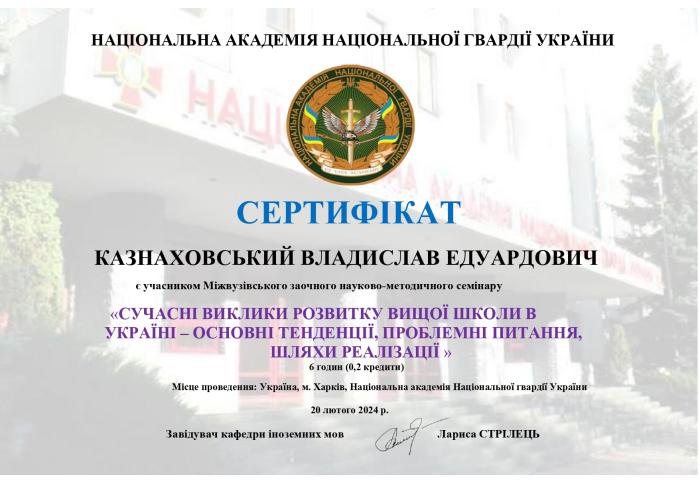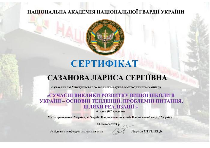 The scientific and pedagogical staff of the Department of Foreign Languages of the Faculty № 4 of KhNUIA - associate professors Oleh Honcharuk and Valentyna Kochyna, senior lecturers Tetiana Kalchenko and Larysa Sazanova, cadets of the Faculty № 4 took part in the Interuniversity correspondence scientific and methodological seminar "Modern challenges of higher education in Ukraine - main trends, problematic issues, ways of implementation". https://univd.edu.ua/uk/news/18954