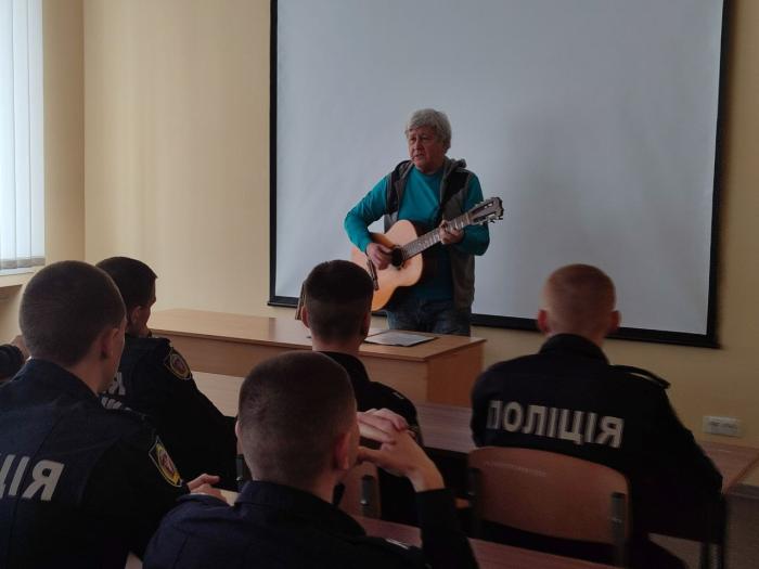 As part of the national and patriotic education of young people, the famous bard from Kyiv, songwriter, theater and film wrighter Ihor Zhuk visited the cadets of the Faculties No. 1 and No. 4 of Kharkiv National University of Internal Affairs. https://univd.edu.ua/uk/news/19233