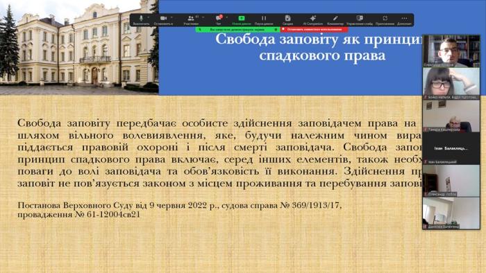 Oleksandr Kukhariev, Professor of the Department of Civil Law and Procedure of the Faculty No. 6, gave a lecture on "Modern Trends in Disputes on Recognition of Wills as Invalid" for judges of the Civil Chambers of the Courts of Appeal. https://univd.edu.ua/uk/news/19264