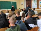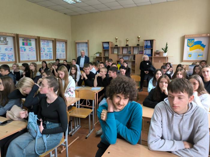 With the future graduates of lyceums No. 4, 6, 7 in Haisyn, Vinnytsia region, assistant rector Viktor Slysh, employees of the department of organization of work on professional orientation of KhNUIA - head of the department Olena Chornous and leading specialist Ihor Ovcharenko, head of the personnel support sector of Haisyn PRD MDNP in Vinnytsia region Lesia Balan held meetings. https://univd.edu.ua/uk/news/21311