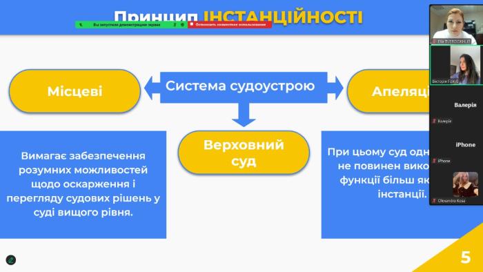 At the initiative of the Director of the ERI No. 5, Oksana BRUSAKOVA, an online lecture was held by the judge of Donetsk District Administrative Court, Viktoria HOLUB, which was attended by higher education students majoring in Law and Law Enforcement. https://univd.edu.ua/uk/news/23333