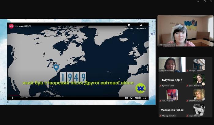 An information and educational event “Ukraine – NATO: Euro-Atlantic Path of Victory” was held for higher education students of Sumy branch. It was conducted by the group curators – Professor of the Department of Humanities Yulia SAMOILOVA and Associate Professors of the same department Nadia DEMYDENKO and Tetiana PONOMARENKO. https://univd.edu.ua/uk/news/24086