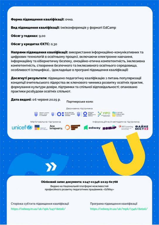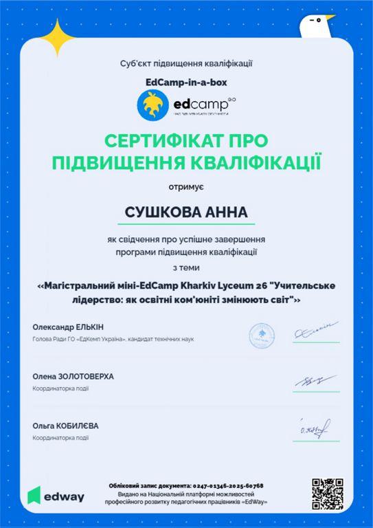 Anna SUSHKOVA, senior lecturer at the Department of Legal Support Entrepreneurial Activity and Financial Security of the ERI No. 5, took a course on "Teacher Leadership: How Educational Communities Change the World." https://univd.edu.ua/uk/news/24210