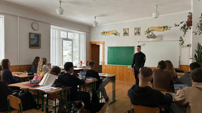 First-year cadet of the ERI No. 1 Liubomyr VASHNII held a meeting with students of the graduating class of Putylskyi Lyceum, located in Chernivtsi region. During the conversation, he shared his own experience of entering and studying at a higher education institution of the Ministry of Internal Affairs system. https://univd.edu.ua/uk/news/24253