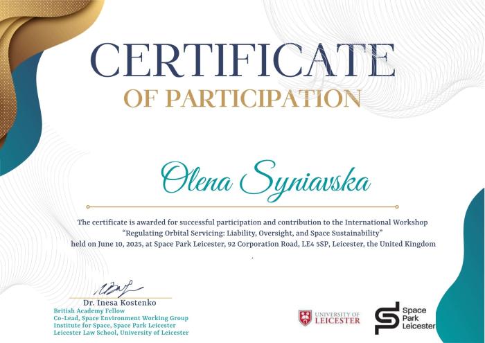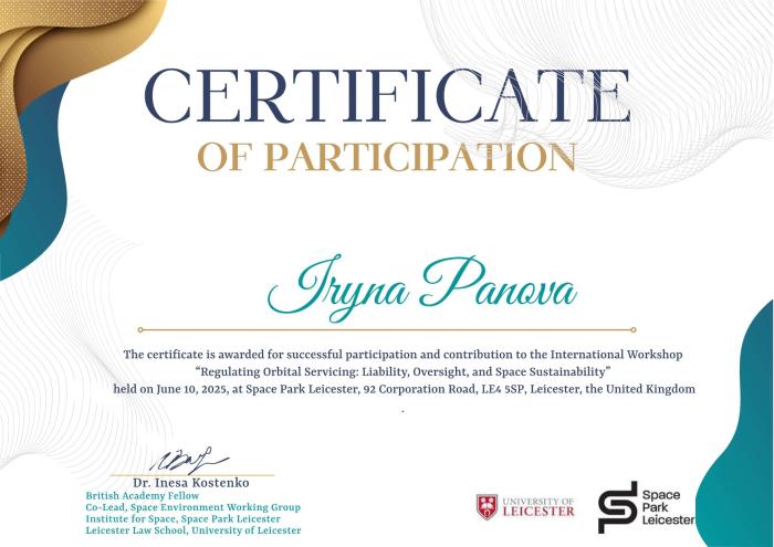 Representatives of the Department of Law Enforcement of the ERI No. 5 Iryna PANOVA, Svitlana POPOVA and Olena SYNIAVSKA joined the work of the International Research Conference "Regulation of Orbital Services: Responsibility, Supervision and Space Sustainability", which took place at the Space Park of the University of Leicester (Leicester, Great Britain). https://univd.edu.ua/uk/news/24280