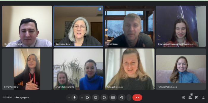 Under the organization and moderation of the International Cooperation Department, English conversation clubs were held weekly in online format for representatives of Kharkiv National University of Internal Affairs, starting from October 2024. The classes were focused on two levels of language proficiency – elementary and intermediate (A2 – B1) and advanced (B2), which ensured effective, individually oriented language practice for the management and scientific and pedagogical staff of the Educational and Research Institutes No. 1-5, representatives of the Divisions of Regime and Secret Support, Analytical Work and Management Organization, Departments of Combating Cybercrime, Constitutional and International Law and Human Rights, as well as other units.