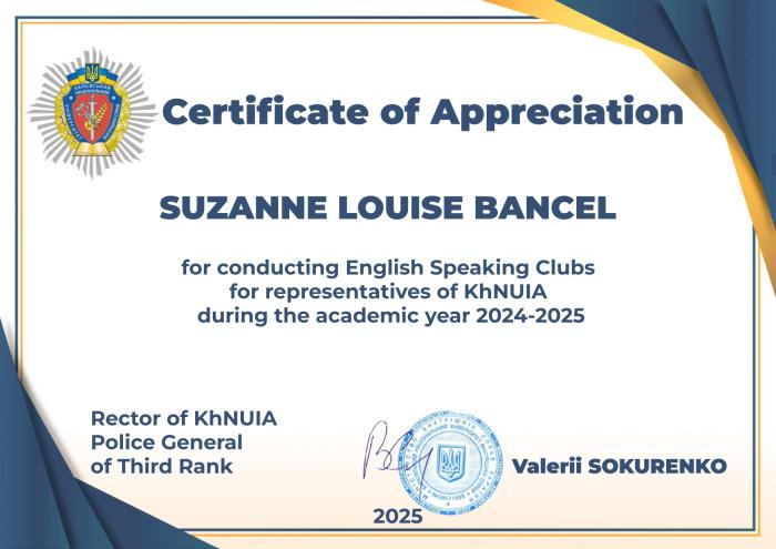 KhNUIA Rector Valerii SOKURENKO expressed gratitude to the foreign teachers for supporting the educational initiative, awarding them with certificates for their contribution to improving the level of English of the university representatives.