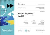 Professor of the Department of Administrative Law and Procedure of the ERI No. 3 Iryna KAZANCHUK completed a distance learning course on the topic "Ukraine's Accession to the EU", created within the framework of the "Towards the EU" program. It is designed for Ukrainian educators and everyone who is interested in Ukraine's movement towards the unification of European countries. https://univd.edu.ua/uk/news/24527