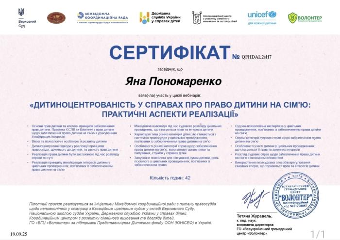 Associate professors of the Department of Sociology and Psychology of the ERI No. 5 Natalia HRESA, Yana PONOMARENKO and Alla SHYLINA successfully completed training within the framework of the webinar series “Child-centeredness in cases on the child's right to a family: practical aspects of implementation” (42 hours) and participated in two additional face-to-face training sessions in Kyiv.