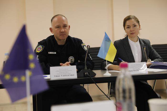 The university was represented by First Vice-Rector Viktor VASYLENKO and Head of the International Cooperation Department Tetiana MATIUSHKOVA. Welcoming the delegation, Viktor VASYLENKO emphasized the importance of partnership with European institutions to improve the professional level of police officers, especially in the field of psychological training and response to crisis situations.