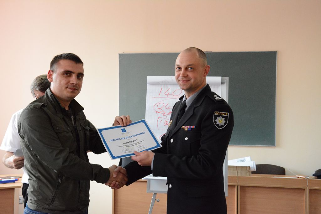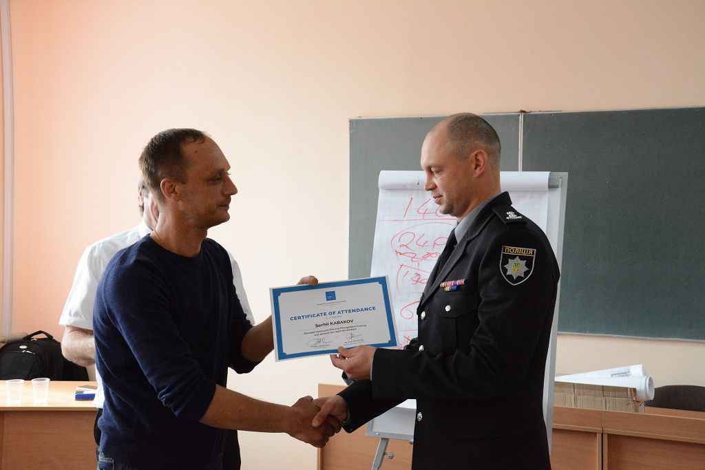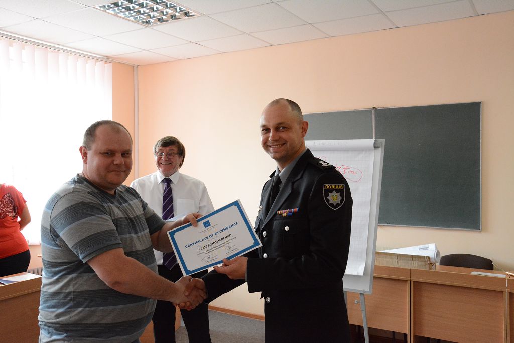 Certificates of participation in the training were given by the first pro-rector of the Kharkov National University of Internal Affairs, Lieutenant Colonel of police Dmytro Shvets and the adviser/trainer on community policing of the European Union Advisory Mission Peter Wilson.