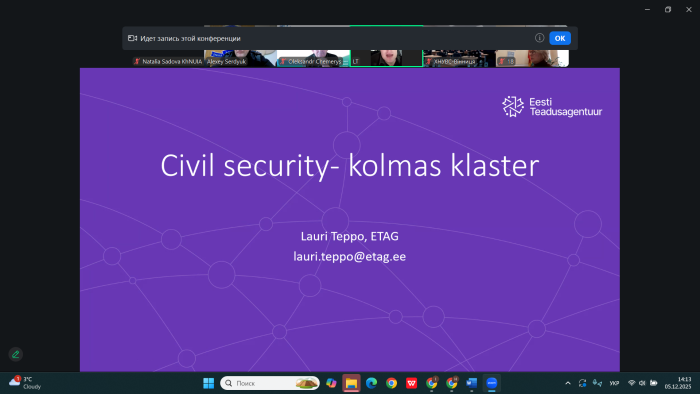 The speakers of the event were: NCPs of the Horizon Europe Project in the direction of «Civil Security for Society» in Estonia Lauri Teppo with a report on financing opportunities; Oleksandr MOISEIEV, Chief Specialist of the Office of Horizon Europe in Ukraine, with a speech on the peculiarities of the formation of consortia; NCPs in the direction of «Civil Security for Society» in Ukraine Oleksii SERDIUK (KHNUIA), who spoke about typical mistakes which reduce the evaluation of cluster 3 projects.