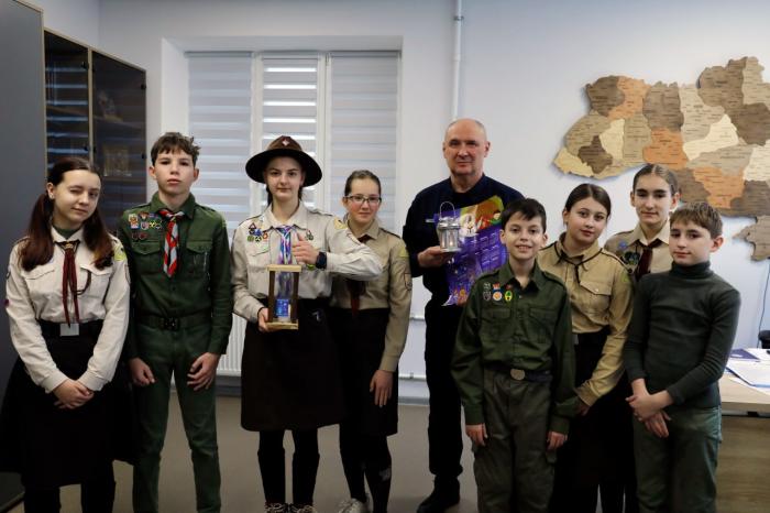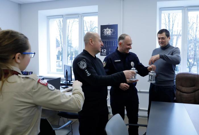 Representatives of the National Scout Organization of Ukraine «Plast» delivered the Bethlehem Peace Light to Kharkiv National University of Internal Affairs. Cadets and university staff participated in the ceremony to adopt the symbol of peace, goodness and unity, what is traditionally spread in Ukraine on the eve of the Christmas holidays.