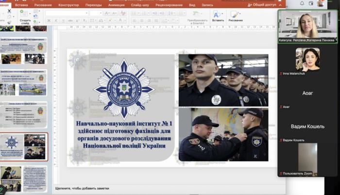 Kateryna PENZIEVA, Senior Lecturer of the Department of Criminalistics and Forensic Science of the ERI No. 1, held a career guidance online meeting with high school students of Kamianets-Podilskyi Lyceum No. 10 of the Kamianets-Podilskyi City Council of Khmelnytskyi region. https://univd.edu.ua/uk/news/26405