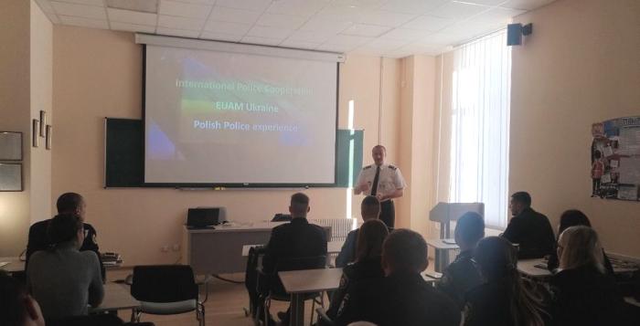 Robert spoke about the history of the establishment, goals, objectives and features of the European Union Advisory Mission, which works and provides consultations and practical support and assistance to Ukrainian authorities in reforming the civil security sector. Robert Zolkiewski answered all the cadets' questions during the meeting.
