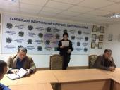 An extended session of the scientific team of the Department of Theory and History of the State and Law of the Faculty No. 1 was held within the framework of the All-Ukrainian Law Week. The session was attended by the Head of the Department Ihor Logvynenko, Acting Head of the Department of Scientific Work Organization Volodymyr Chumak, Vice-Dean for teaching and methodological work of the Faculty № 2 Serhii Hirenko, teachers of the Department and cadets - members of the scientific team.