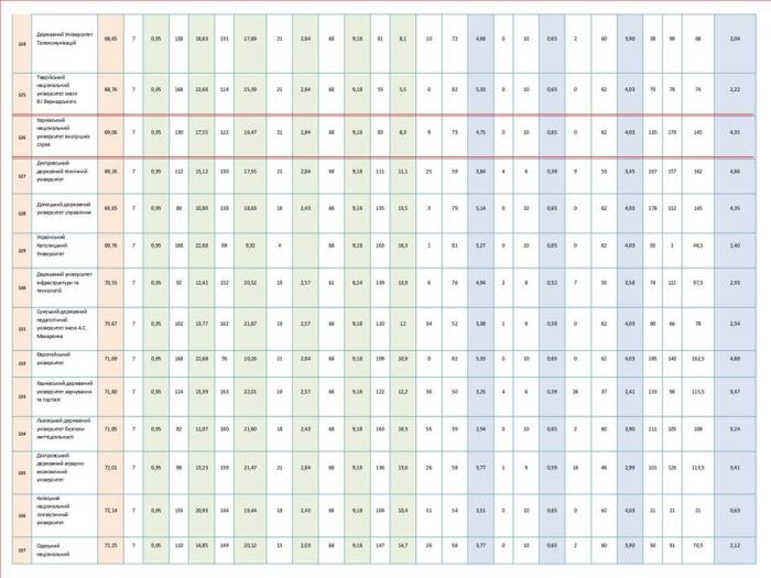 The current rating of Ukrainian Universities were estimated on ten indicators, six are international and four are national.