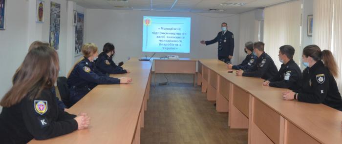 The meeting was opened by Valentyna Honcharuk, Associate Professor of the Department, Candidate of Law, Senior Researcher, Lieutenant Colonel of Police, who stressed the importance of the event for cadets, deepening their knowledge in the field of labor and economic law and understanding of youth policy.