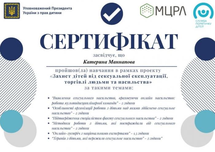 Kateryna Mannapova, Associate Professor, took part in the 12-th Scientific and Practical Psychotherapeutic Conference “The challenges of the modern world: realities and paradoxes of psychotherapy” of Kharkiv Gestalt and Psychodrama Institute and held a masterclass “Dealing with trauma and loss in child psychodrama”. She also passed training within the project “Protecting children from sexual exploitation, human trafficking and violence”.