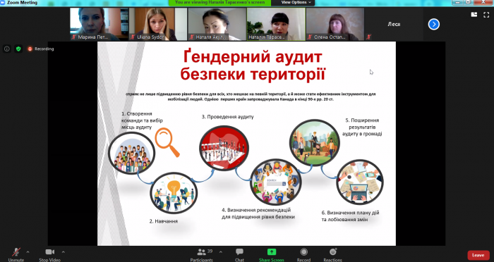 The trainers were: Uliana Sydor, an expert on attracting grant funding, a grant manager; Nataliia Tarasenko and Olena Ostapchuk, gender experts with considerable experience of cooperation with local governments and the implementation of joint gender-sensitive projects, including projects in the field of security of premises and outdoor space.