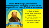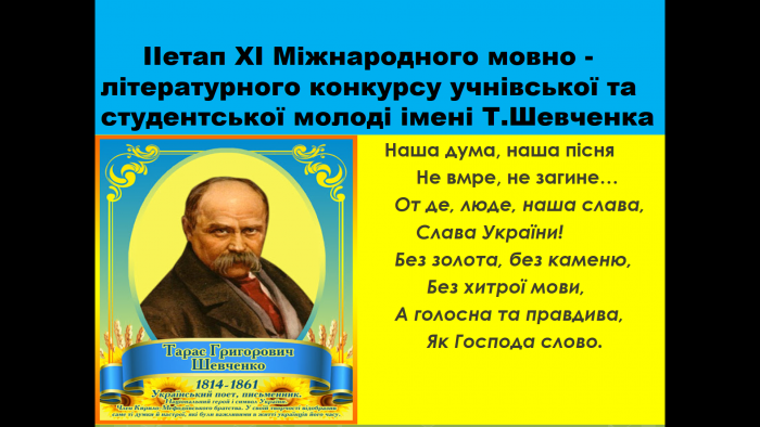 The second stage of the XI Taras Shevchenko International Language and Literature Competition for Pupils and Students held at Kremenchuk Flight College of Kharkiv National University of Internal Affairs, in order to honor the creative heritage of the Great Kobzar.