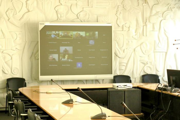 The online round table “The information technologies implementation in the law enforcement agencies' activities was held at Kharkiv National University of Internal Affairs, which was attended by Valerii Sokurenko, Rector of the University, Dmytro Shvets, the First Vice-Rector, Leonid Mohilevskyi, Vice-Rector, Viacheslav Markov, Dean of the Faculty No.4 (Cyberpolice) and Yurii Hnusov, Head of the Department of Information Processing Technology and Cybersecurity.