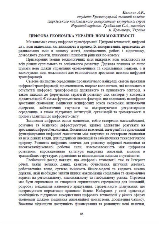 Under the guidance of his academic advisor Svitlana Hrybanova, the student conducted research on the analysis of information on the development of new opportunities in the digital economy of Ukraine and prepared abstracts for participation in the conference.