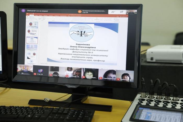 Valerii Sokurenko, Rector of the University, Corresponding Member of the National Academy of Legal Sciences of Ukraine, Doctor of Law, Professor; Dmytro Shvets, First Vice-Rector, Doctor of Law, Associate Professor; Olena Yevdokimova, Head of the Department of Sociology and Psychology of the Faculty No.6, Doctor of Psychological Sciences, Professor as well as representatives of the scientific community, cadets and university students took part in the event.