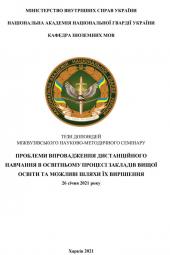 Teaching staff of the Department of Foreign Languages of Faculty № 1 took part in the interuniversity scientific and methodical seminar "Problems of introduction of distance learning in the educational process at higher education institutions and possible ways to solve them" that took place at the National Academy of the National Guard of Ukraine.