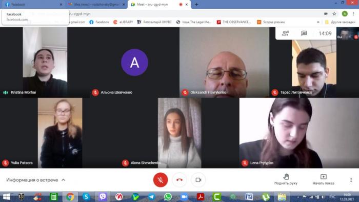 An interuniversity online meeting of the scientific circle of the Department of Constitutional and International Law of the Faculty № 4 of KhNUIA, supervisor - Associate Professor Oleksandr Radchenko, and the scientific circle of international law of the Department of International and European Law of V. N. Karazin Kharkiv National University. Issues related to the support and protection of victims of crime and abuse of power, justice for victims of crime, and international experience in assisting victims of crime were discussed during the discussion.