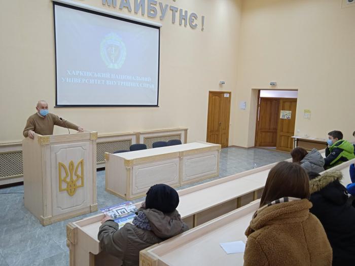 High school pupils of the Secondary School No. 90 of Kharkiv visited Kharkiv National University of Internal Affairs at the invitation of the management of the Faculty No. 6. The pupils got acquainted with the University, examined educational and specialized classrooms, training grounds, sports complexes, visited a shooting range, a university museum, etc.