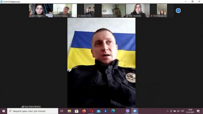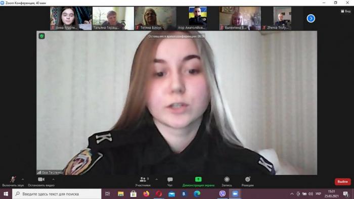 The meeting of the student-cadet scientific circle "Veritas" of the Department of Humanitarian Disciplines of Sumy Branch of KhNUIA was held on the topic "Specifics of deformations of legal consciousness". The meeting was online in the form of a round table with the participation of cadets and students of Sumy Branch, the scientific leader, Associate Professor of the Department Tetiana Herashchenko, Professor of the Department Valentyny Vasylenko, Associate Professor Tetiana Bilous, and a practical employee of the Department of Patrol Police of Sumy Сity, Senior Police Sergeant Ihor Illiashenko.