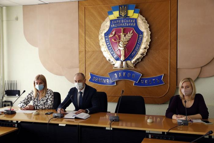 An online meeting of the management of Kharkiv National University of Internal Affairs and Faculty № 6 with the management, employees, and applicants for education of other educational institutions took place. The event was attended by the first vice-rector of the university, police colonel Dmytro Shvets, dean of the faculty № 6 Oksana Brusakova, adviser rector Viktor Slysh, deputy executive secretary of the admissions committee Maryna Davydova, representatives of other faculties and departments of the university.