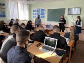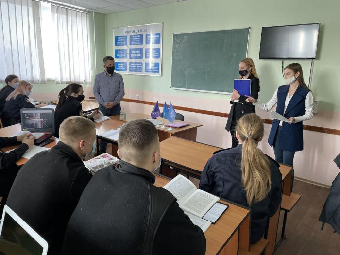 Inna Savina and Alona Ryndych, Specialists of the Department of International Cooperation of Kharkiv National University of Internal Affairs, together with Andrii Voitsikhovskyi, Professor of the Department of Constitutional and International Law of the Faculty No. 4, conducted an introductory session dedicated to the NATO Foundation Day, which is celebrated on 4 April, for 2nd-year cadets of the Faculty No. 1.
