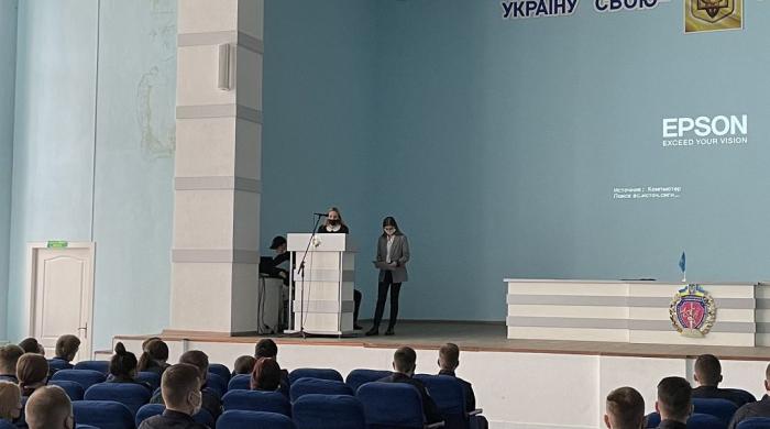 To the NATO Foundation Day, Inna Savina and Alona Ryndych, Specialists of the Department of International Cooperation of Kharkiv National University of Internal Affairs, together with Andrii Voitsikhovskyi, Professor of the Department of Constitutional and International Law of the Faculty No. 4, conducted an introductory lesson "Ukraine and NATO - Strategic Partnership" for the 2nd-year cadets of the Faculty No. 4.
