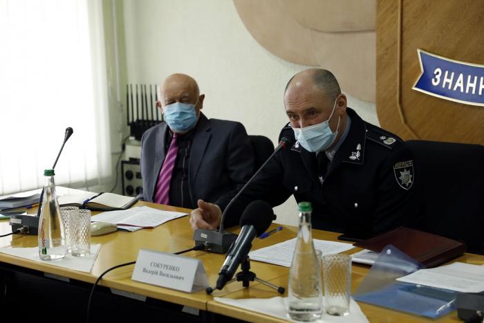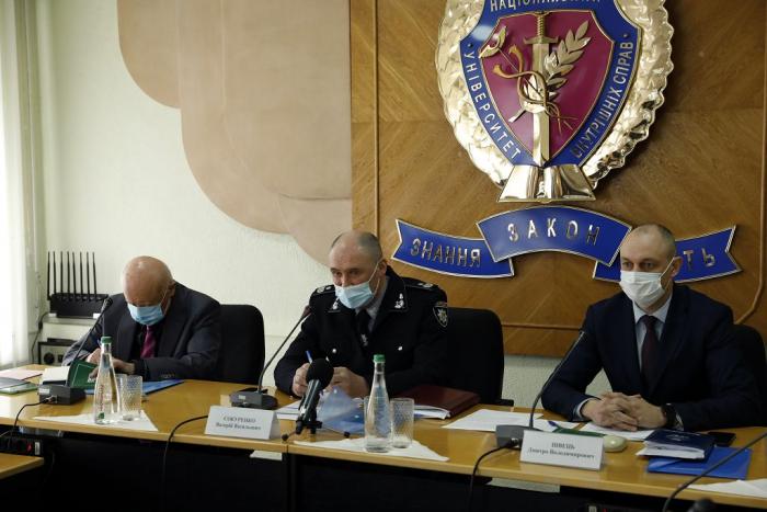 The scientific meeting was attended by the Rector, Corresponding Member of the National Academy of Legal Sciences of Ukraine, Doctor of Legal Sciences, Professor, Honored Lawyer of Ukraine, Police General of the 3-rd rank Valerii Sokurenko, First Vice-Rector of the University, Doctor of Legal Sciences, Associate Professor, Honored Educator of Ukraine, Police Colonel Dmytro Shvets, President of the Criminological Association of Ukraine, Academician of the National Academy of Legal Sciences of Ukraine, Doctor of Legal Sciences, Professor, Honored Lawyer of Ukraine Oleksandr Bandurka, Dean of the Faculty № 6, Doctor of Legal Sciences, Associate Professor Oksana Brusakova, Acting Head of the Department of Scientific Work Organization, Doctor of Legal Sciences, Associate Professor Volodymyr Chumak, Head of the Department of Sociology and Psychology of the Faculty № 6, Doctor of Psychological Sciences, Professor Olena Yevdokimova, Head of the Department of Sociology and Psychology of the Faculty № 3, Doctor of Pedagogical Sciences, Professor Olena Fedorenko.