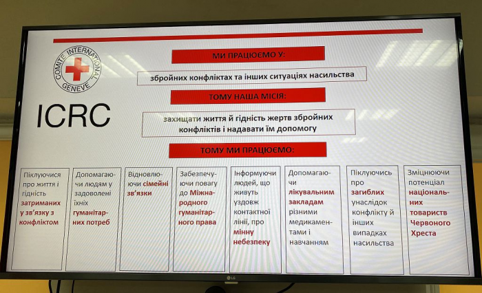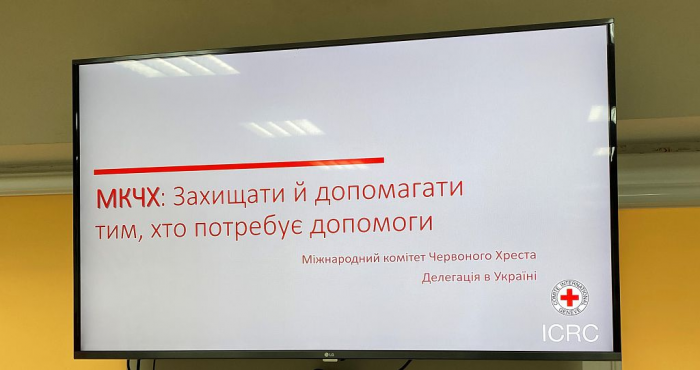 The event speaker is Dmytro Dvornyk, an adviser on law enforcement of the International Committee of the Red Cross.