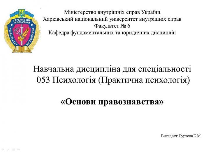 Kseniia Hurtova, a lecturer at the Department of Fundamental and Legal Sciences of the Faculty № 6 of KhNUIA, conducted an online consultation for students majoring in Psychology in the discipline "Fundamentals of Law".